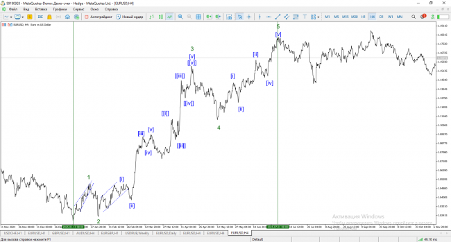 С 13.01.2025 – 01.07.2025 стремительный импульс на 1 – 2 – 3 – 4 – 5 с удлиненной волной 3 на Минутном волновом уровне.