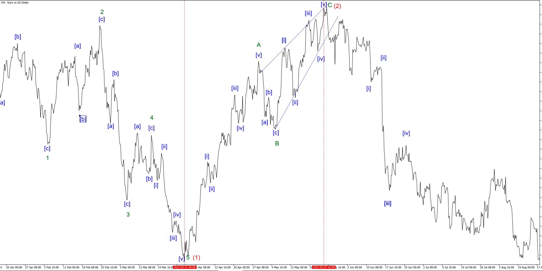31.03.2021 – 25.05.2021 на EURUSD восходящий Зигзаг с чередованием в действующих волнах.