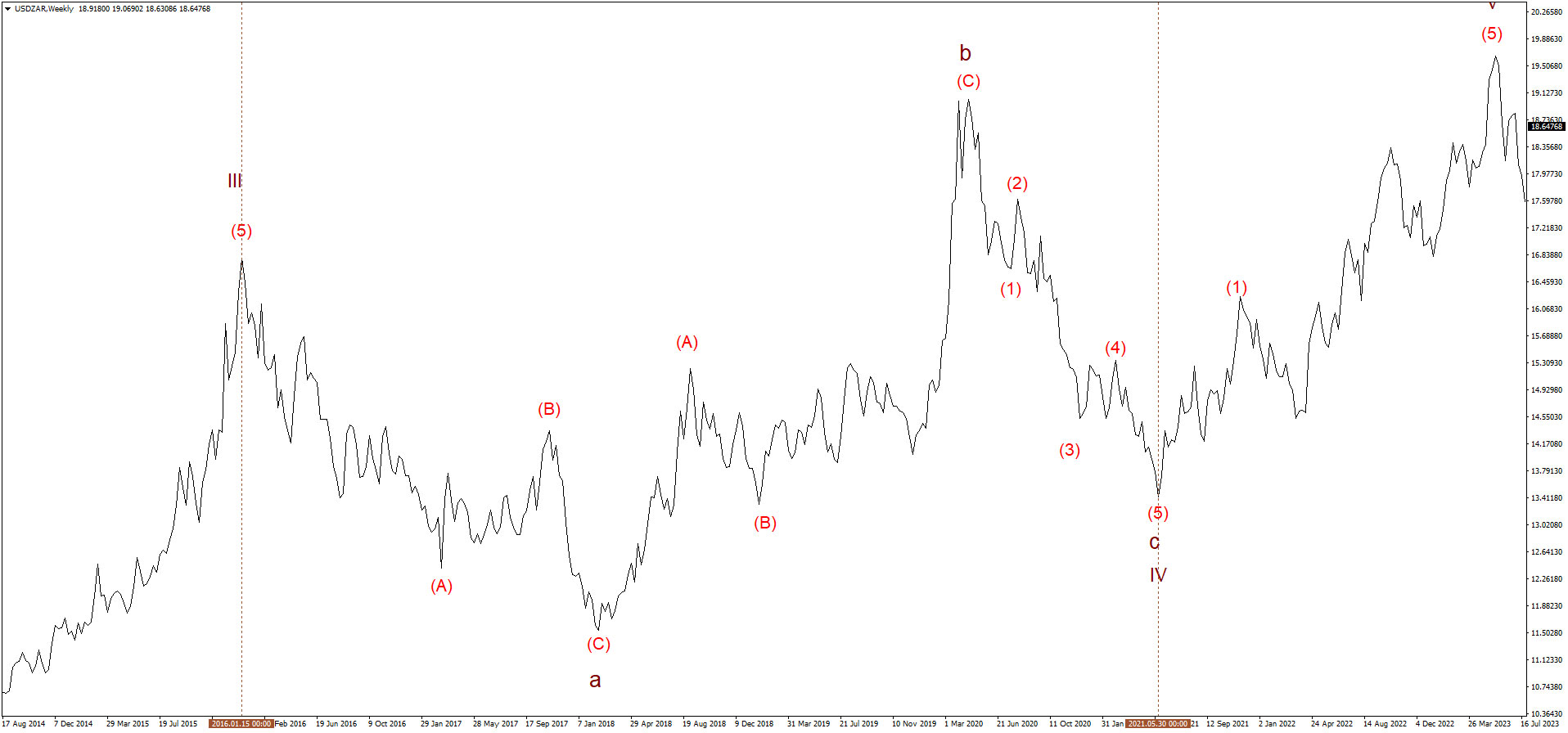 Нисходящий импульс (1) – (2) – (3) – (4) – (5) на паре USDZAR на среднем (Intermadate) волновом уровне с качестве волны с основного (Cycle ) волнового уровня от сдвигающейся волновой плоскости в качестве волны IV. Навигация по записямПредыдущаяПредыдущая запись:Восходящий тройной зигзаг на валютной паре USDCHF на мелком волновом уровнеСледующаяСледующая запись:Чередование в коррекционных волнах импульсной волны [v] на EURAUDRelated PostsНисходящий импульс на паре USDCAD на минутный уровне с 10.03.2023 – 14.04.202328 июля, 2023