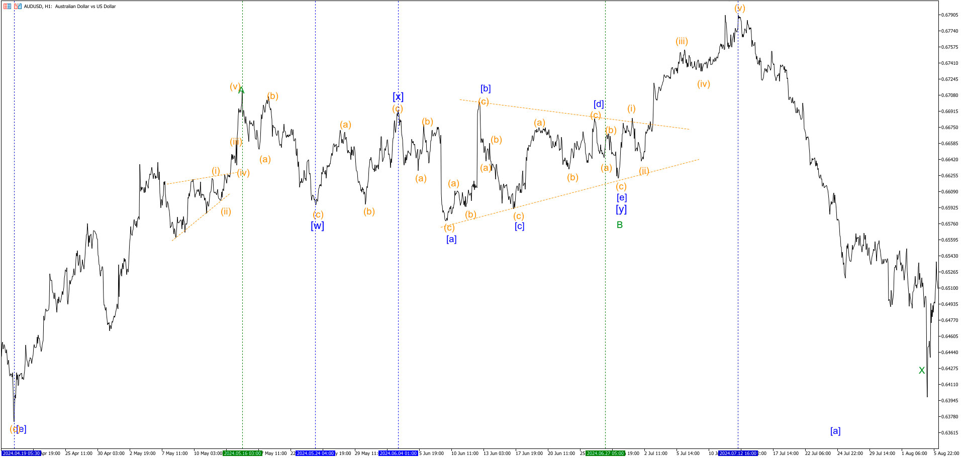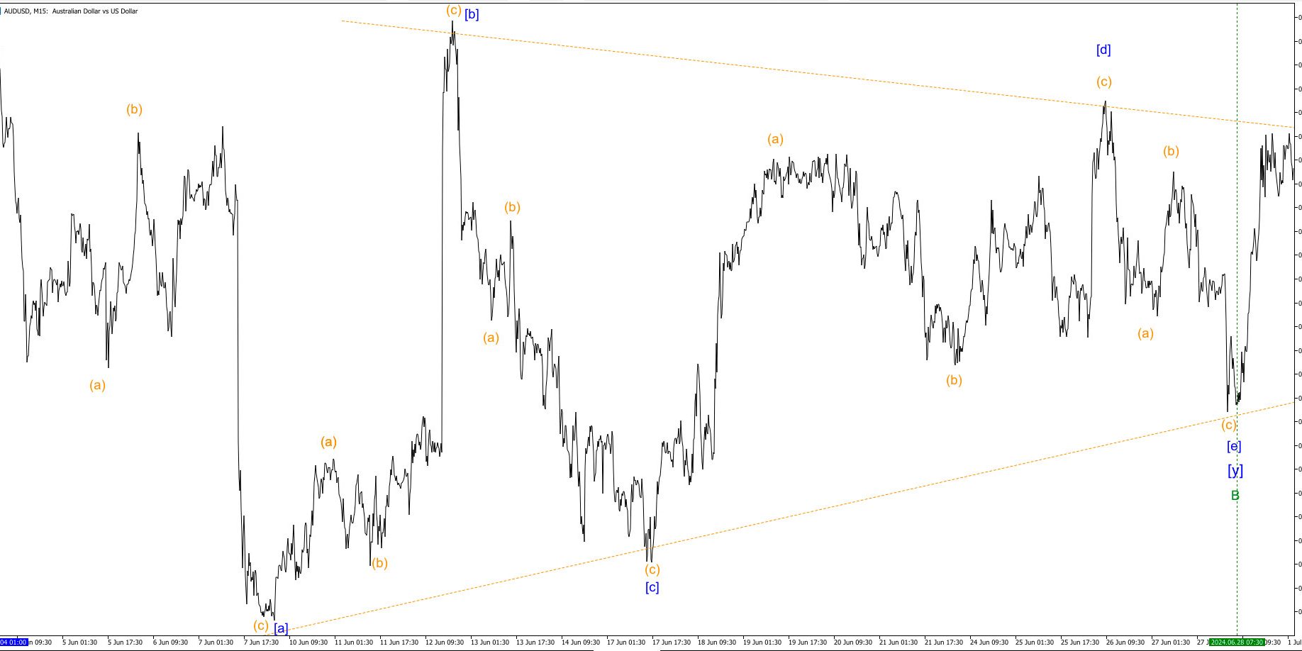 Рис. 1 Рис. 2 Общий вид 24.05.2024 – 12.07.2024 – Нисходящий симметричный (сходящийся) треугольник [a] [b] [c] [d] [e] на минутном волновом уровне на на AUDUSD. Навигация по записямПредыдущаяПредыдущая запись:Нисходящая двойная тройка AUDUSD на минутном волновом уровне в качестве волны B ЗигЗагаСледующаяСледующая запись:Чередование между волнами 1 и 5 восходящего импульса на AUDUSDПохожие записиСимметричный треугольник на USDCAD на сверхмаленьком уровне в качестве волны (y) в двойной тройке в волне (iv)17 сентября, 2023