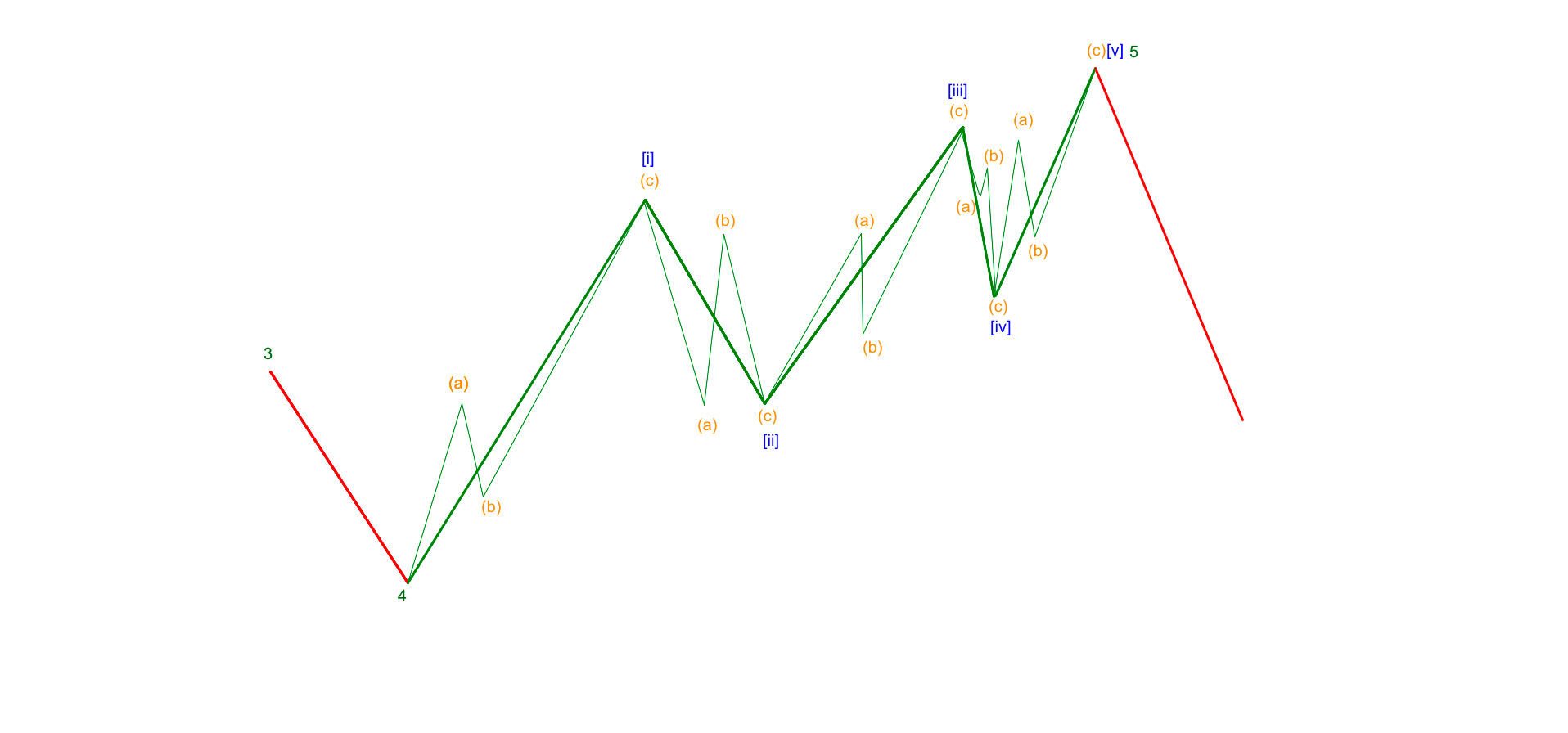 Основные волны маркируются только цифрами: арабскими – 1, 2, 3, 4, 5 или римскими – I, II, III, IV, V (i, ii, iii, iv, v) в зависимости от волнового уровня.